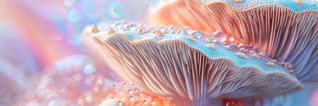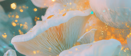 Captivating texture of mushroom gills with organic patterns and sparkling gold accents