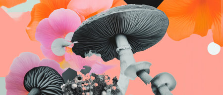 Mushroom patterns in vibrant colors and abstract textures reflecting artistic inspiration