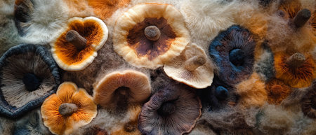 Exploring the intricate textures and colors of mushroom spores and fine powder