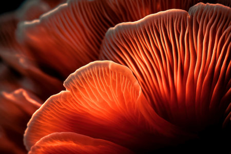 the intricate textures and organic shapes of a mushroom cap in macro shots
