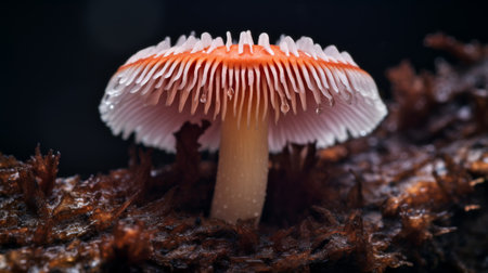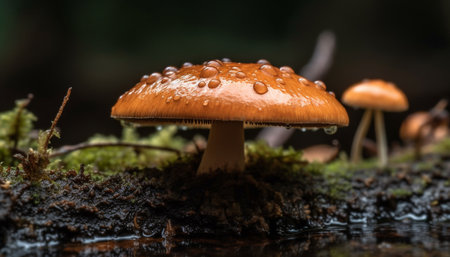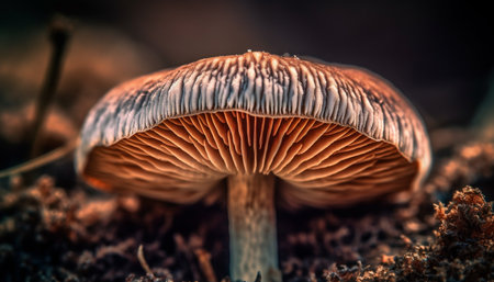 Close-up of a mushroom on a dark blurred background, generated by AI