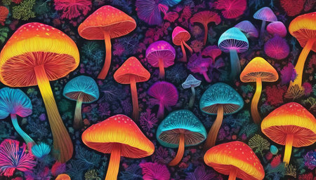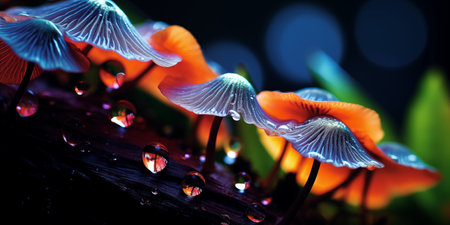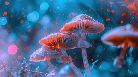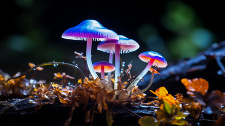 Bioluminescent, psychedelic, mushrooms. Generative AI technology