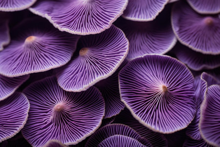 Striking Purple macro closeup mushrooms. Botanical forest. Generate Ai