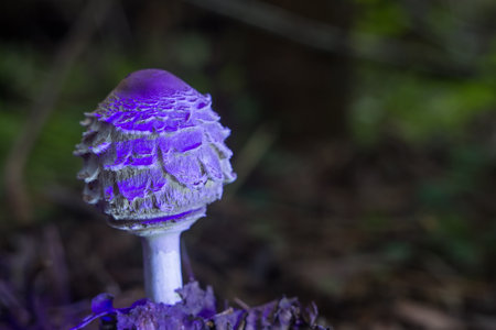 Purple macro closeup mushrooms. Botanical forest. Generate Ai