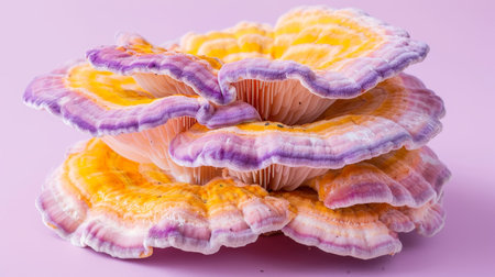 Oyster mushroom pleurotus ostreatus on soft pastel colored background, nature fungi photography
