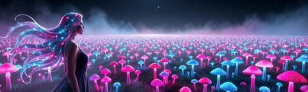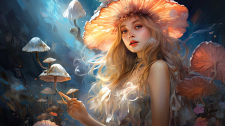 Mystical Woman glowing mushroom. Fantasy dream. Generate Ai