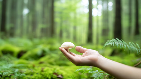 a hand holding a single mushroom, created with generative ai