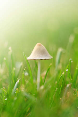 close-up of toadstool mushrooms outdoor in sunny backyard shot at shallow depth of field