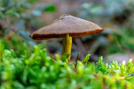 mushrooms galerina on a blurred background. colorful macro photography of mushrooms. close-up. space for text. Galerina marginata.