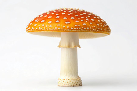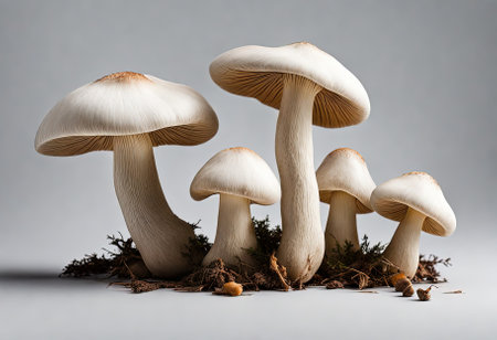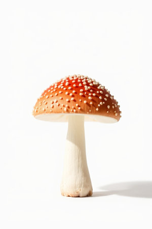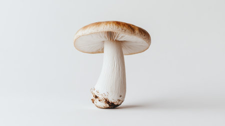 AI Generated. A pristine, whole white mushroom, its cap smooth and uniform, presented on a white canvas