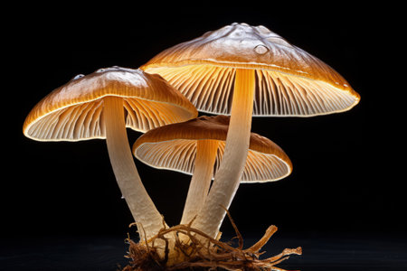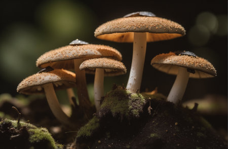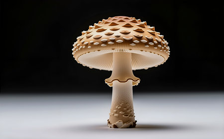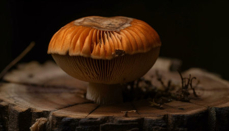 Close-up of a mushroom on a dark blurred background, generated by AI