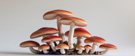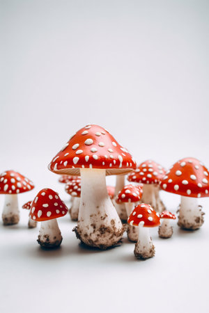 AI Generated. A group of red and white mushrooms sitting on top of each other