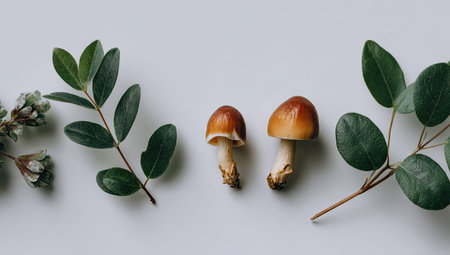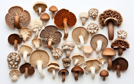 Fresh mushrooms artfully arranged on a rustic textured background, highlighting natural flavors.