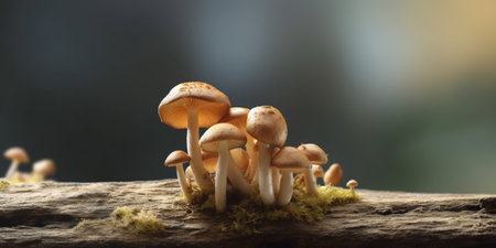 Generative AI : Wild mushrooms growing in a dead piece of wood