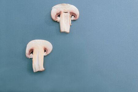 The concept of superfood. Composition with porcini mushroom on gray background, minimalism