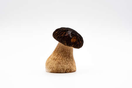 Boletus edulis: white fungus, and type species of the genus Boletus. Forest porcini mushroom isolated on white background. close up. high quality photo