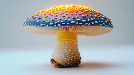 A blue mushroom with golden speckles radiates a gentle light, showcasing nature.