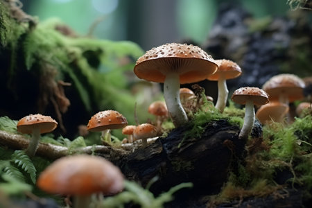 AI Generated. Wild Mushrooms Sprouting on Forest Floor