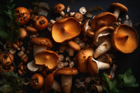 background freshly picked mushrooms. Generative AI