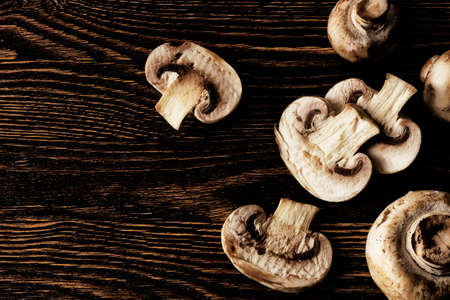 Fresh mushrooms on wooden background