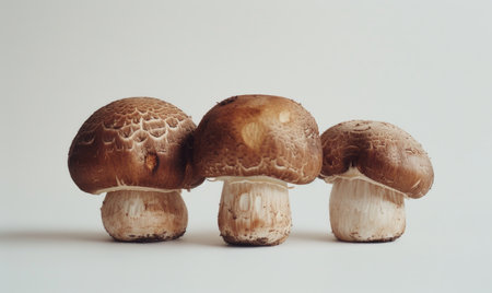 Fresh organic mushrooms on a light background, showcasing earthy tones and textures, perfect for healthy cooking and vegetarian recipes