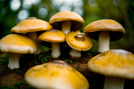 Mushroom, Hypholoma fasciculare, commonly known as the sulphur tuft or clustered woodlover. Generative Ai