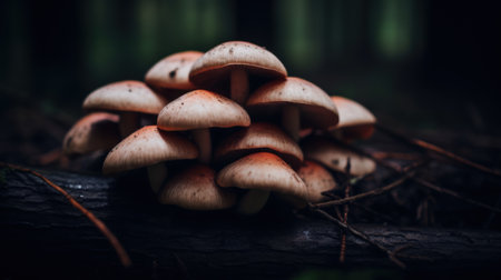 Generative AI : Wild mushrooms growing in a dead piece of wood