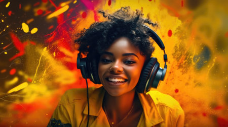 candid shot of an excited young african woman party with headphones. beautiful Generative AI AIG32