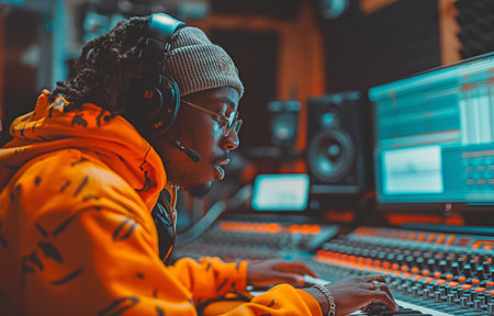 Dynamic portrait sound technician's passion vivid contrast and vibrant focus