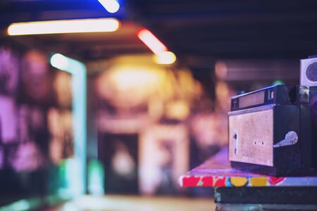 Retro old radio, Vintage analog radio tuner, In The Night Colorful Light night club