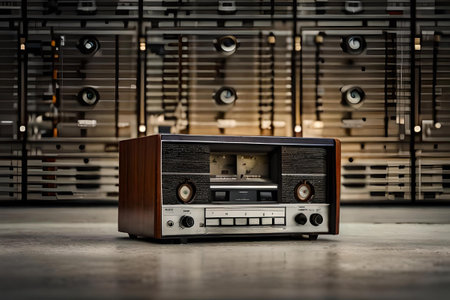 An old analog radio on a dark background. Space for text or design