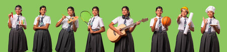 Indian asian career orianted teenage girl school kid portraying education and future profession concept