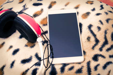 mobile phone with earphones in the home room