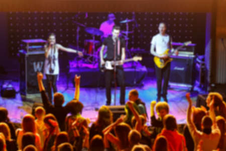 Stage lights.Playing guitar and concert concept.Live music background.Rock concert.Music festival.Instrument on stage and band,bass guitarist.