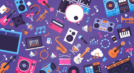 Seamless Pattern Music Instruments And Equipment Electronics Icons Flat Vector Illustration