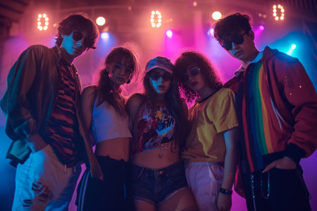 1980s 1990s style. Punk fashion as a reaction to the hippie movement of past decades and against materialistic values of the current decade. Retro, pop, hipster, neon, colorful, nineteenth