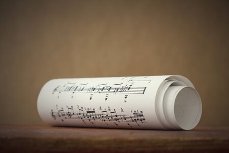 Create or compose this music note paper by myself. sheets music note on brown ola paper background.