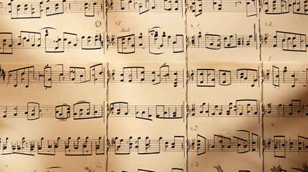 Aged sepia effect of a macro closeup shot of musical notes written on paper notes in traditional sheet music format