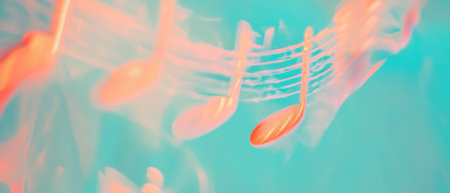 This captivating image features vibrant music notes flowing in colorful waves, illuminated by soft light and creating an artistic atmosphere ideal for conveying emotion.
