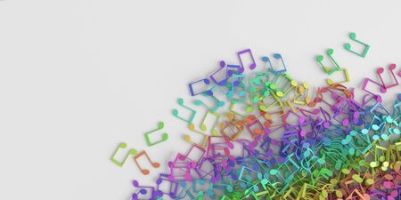 three-dimensional notes are scattered on a white background. musical concept. 3d render illustration