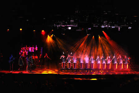 Shanghai, China - Jun 3, 2019. Live music show of Naming Ceremony on Royal Caribbean Spectrum of the Seas cruise ship.