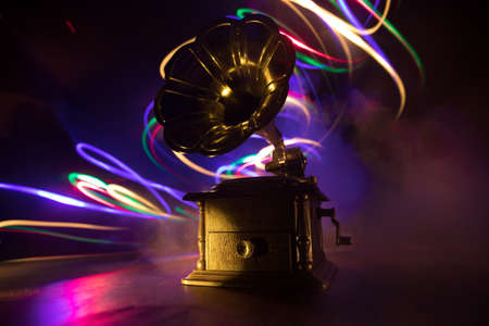 Vinyl DJ turntable in club lighting. close-up. pink tint. retro style