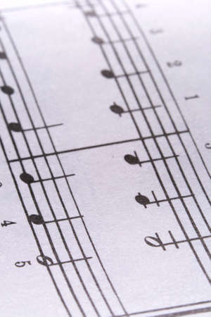 Close up musical notes printed on the paper. Selective focus. Musical notation