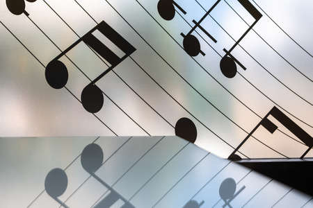 Music notes on a staff or musical score on a translucent glass