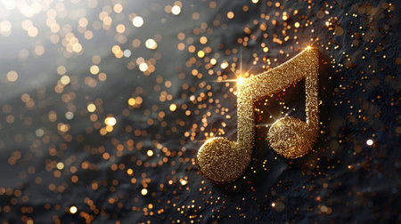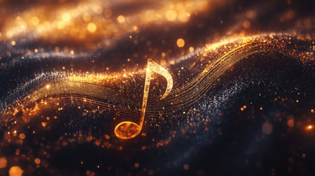 A stunning and vibrant abstract image featuring musical notes sparkling over golden waves. Perfect for themes of creativity, celebration, and artistic expression.