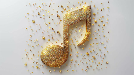 A captivating image showcasing a flowing sheet of music adorned with golden confetti, set against a sleek, modern interior. This composition evokes creativity and celebration.