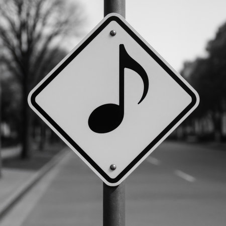 A road sign with a musical note on an empty street