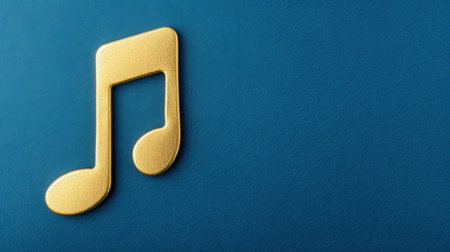 The vibrant gold light of the music note shines brightly on a serene blue background, evoking feelings of creativity and peace.