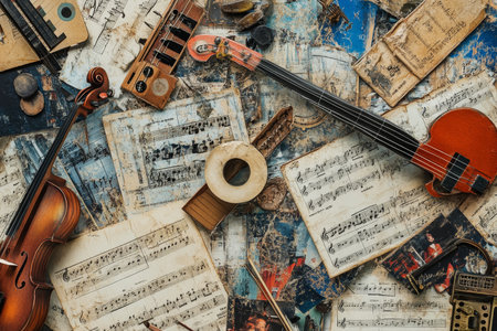 A creative collage highlighting the universal language of music with instruments and sheet music
