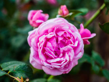 pink roses on its branches on terrace garden closeup